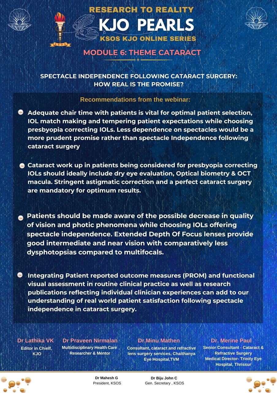 This flashcard highlights Pearls from Module 6, (Theme Cataract) of ‘RESEARCH TO REALITY’, the KSOS-KJO online series on Evidence Based Practice.